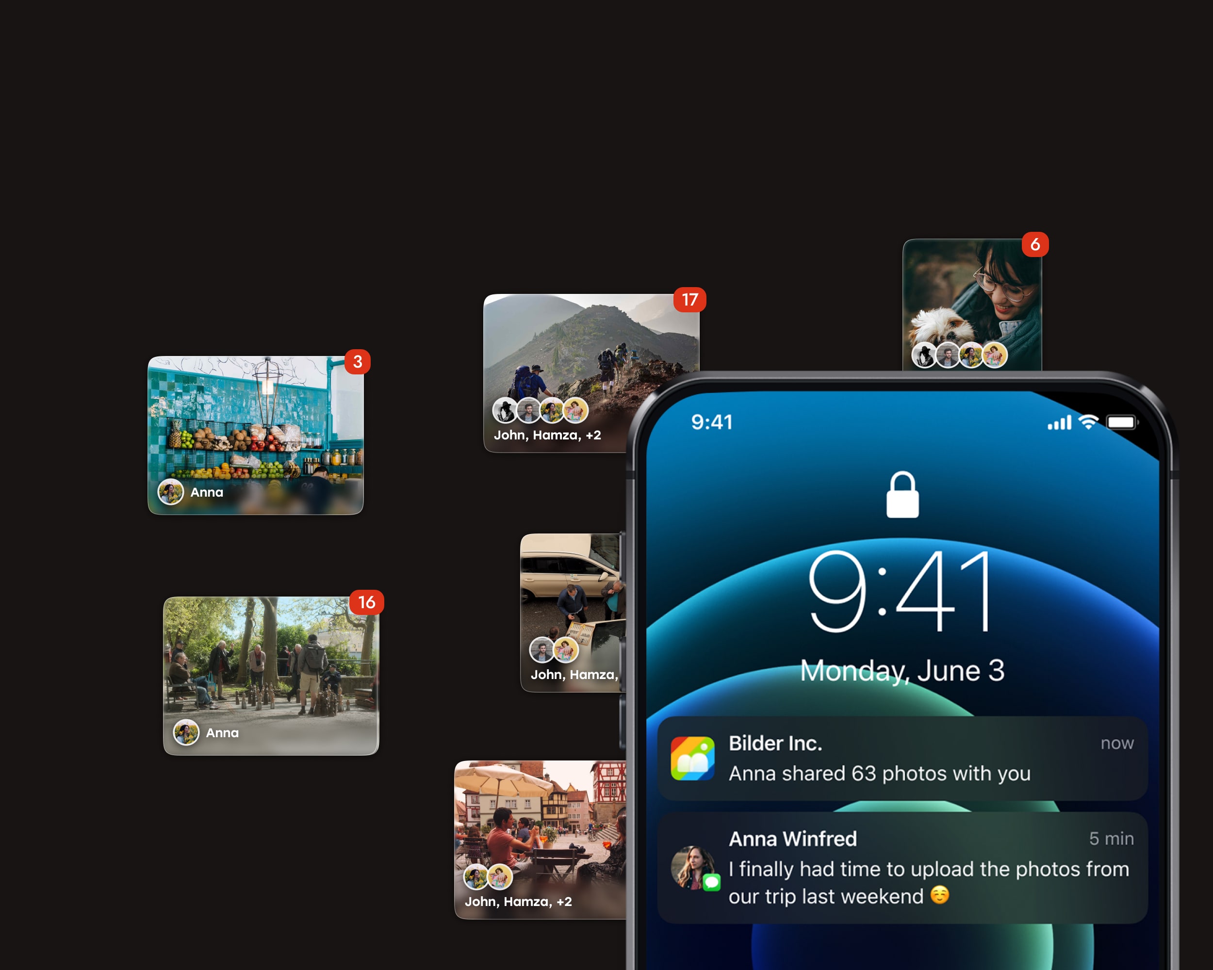 Share your favorite photos through BilderApps. Shared images will appear directly in others' libraries.