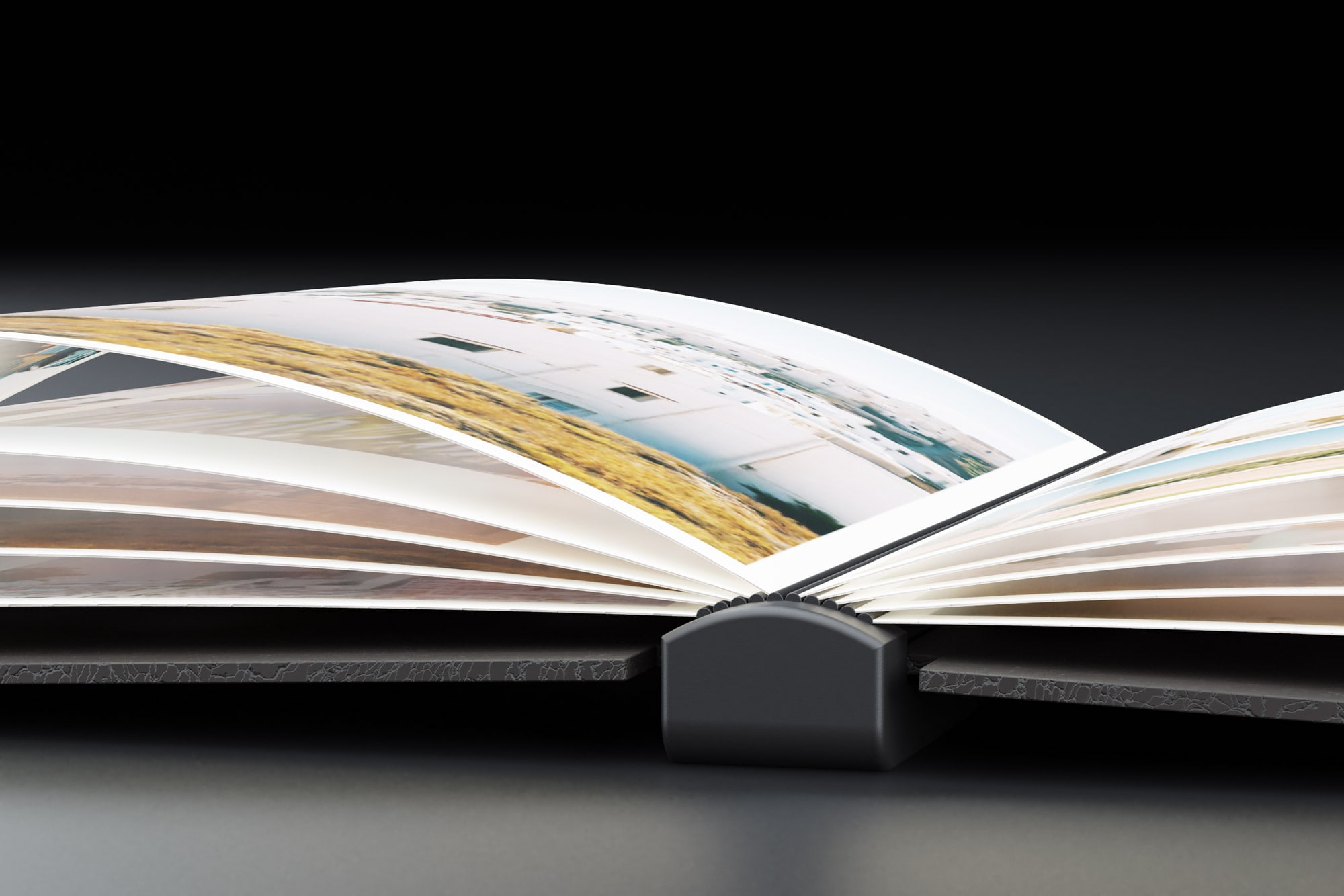 10 flexible, ulrathin OLED screens make BilderBook possible. Enclosed in an ingenious hinge.
