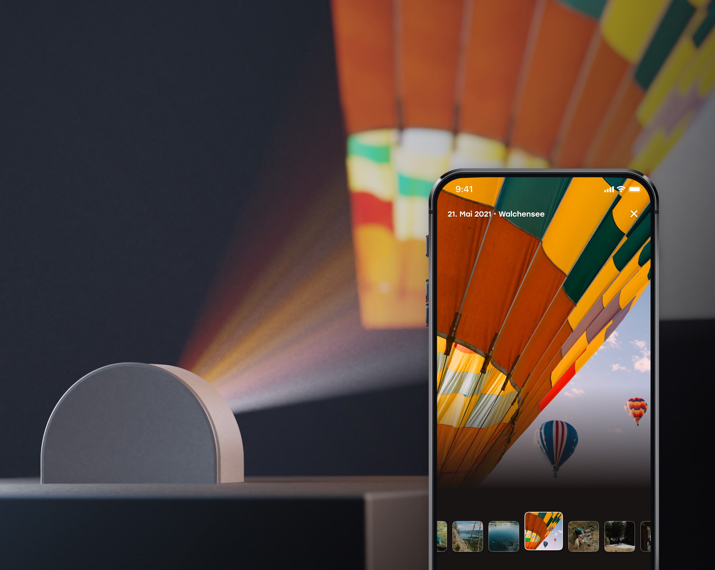 When projecting photos with BilderBeam, choose which collections or photos to show with BilderApps from your favorite device.